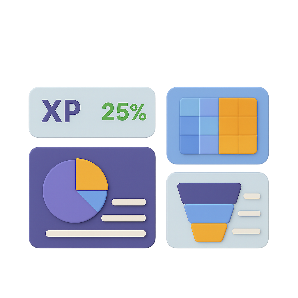 Visual progress bars and bonus XP for daily engagement streaks.