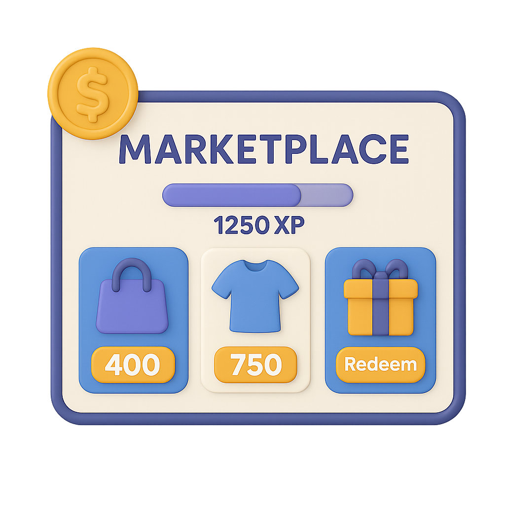 Trade XP for digital resources, avatars, badges, or study packs.